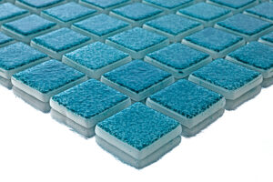 Stakleni mozaik Bali u kombinaciji plave boje koje odaju utisak presijavanja kao da ste na moru.