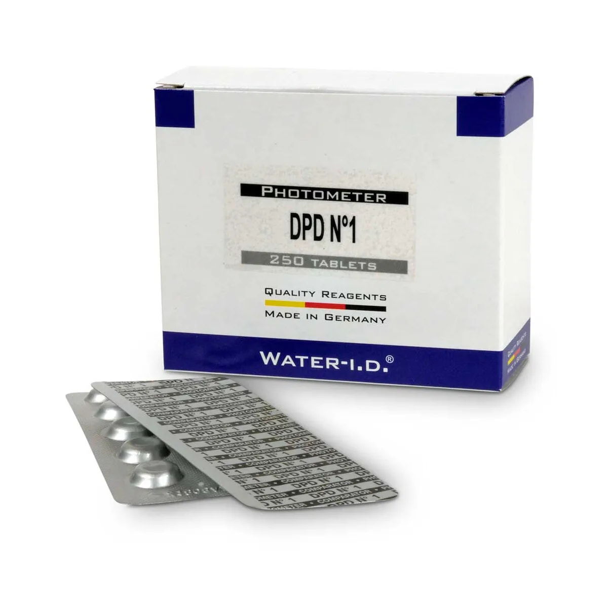 DPD-1 reagens tablete marke Water ID namenjene su za precizno merenje nivoa slobodnog hlora u vodi.