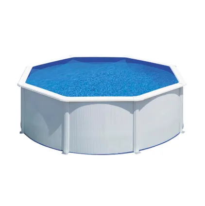 Montažni bazeni GRE proizvedeni u Španiji i odgovaraju evropskim standardima koji su na snazi, ovi bazeni se lako postavljaju bez potrebe iskopavanja i imaju veliku izdržljivost. Laki za montažu, otporni i ekonomični. Komplet za bazen sadrži svu opremu za njegovu montažu: zid od belog čelika, košuljicu, skimer, filter za pesak i sigurnosne merdevine.