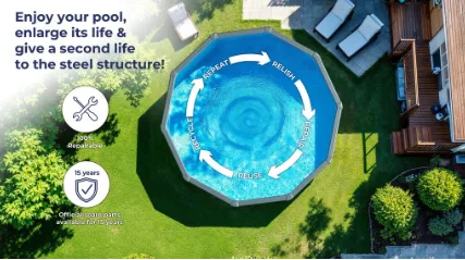 Montažni bazeni GRE proizvedeni u Španiji i odgovaraju evropskim standardima koji su na snazi, ovi bazeni se lako postavljaju bez potrebe iskopavanja i imaju veliku izdržljivost. Laki za montažu, otporni i ekonomični. Komplet za bazen sadrži svu opremu za njegovu montažu: zid od belog čelika, košuljicu, skimer, filter za pesak i sigurnosne merdevine.
