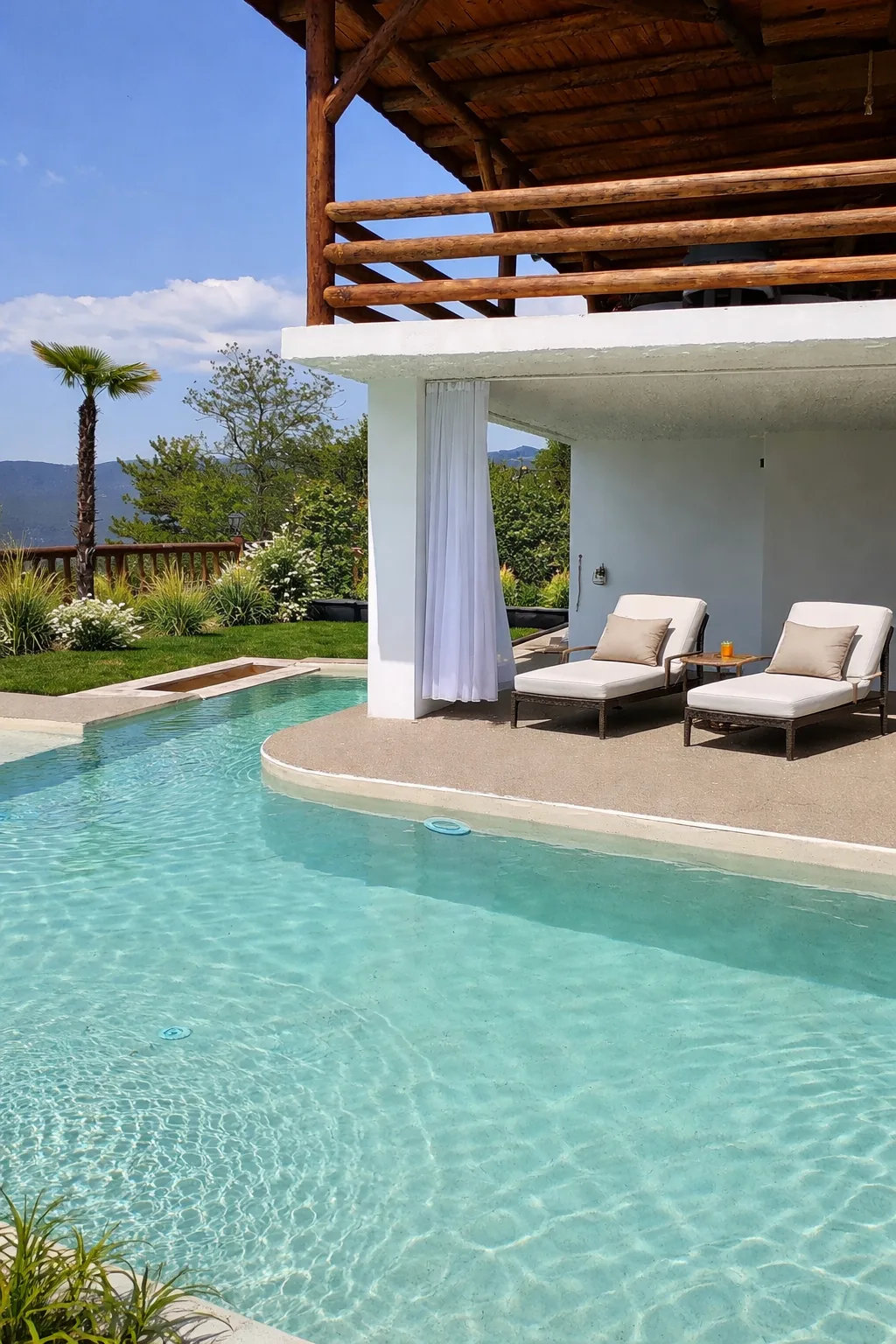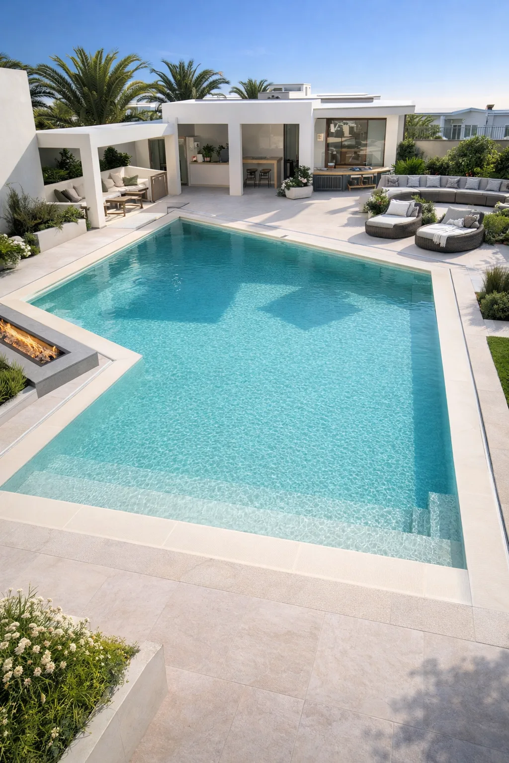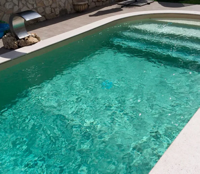 Dekor Terra sa peskovitim tonovima vodi daje prelepu tirkiznu nijansu, stvarajući osećaj prirodnog, mirnog okruženja bazena (ton zavisi od svetlosti i okoline).