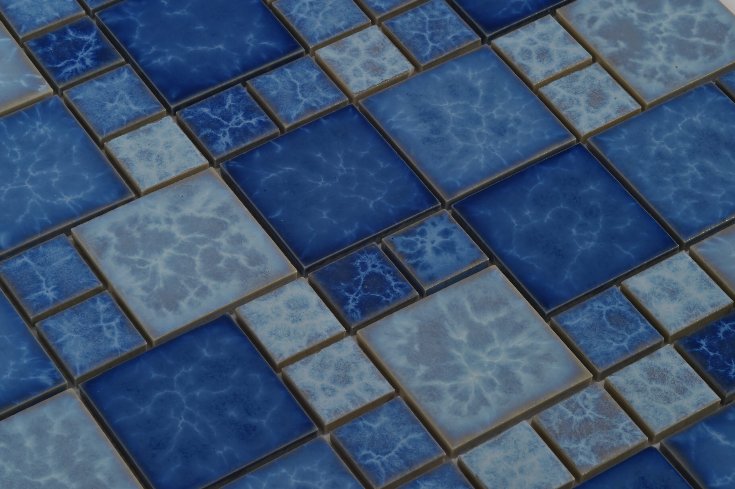 Stakleni mozaik Maldivi Mix u kombinaciji plave boje koje odaju utisak presijavanja kao da ste na moru.