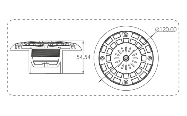 Podna mlaznica Emaux Fi63 za betonske bazene dizajnirana je za pouzdanu i efikasnu cirkulaciju vode. Montira se na lepak, u podu, što omogućava čvrstu i trajnu ugradnju u betonsku konstrukciju.