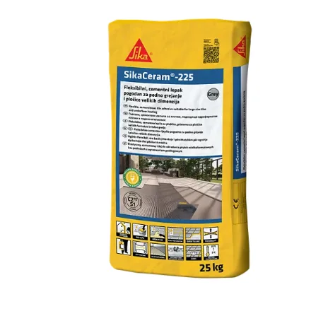 SikaCeram®-225 je visokokvalitetni fleksibilni cementni lepak, namenjen za lepljenje keramičkih pločica na podne i zidne površine, u unutrašnjem i spoljašnjem prostoru. Odlikuje se smanjenim klizanjem i produženim otvorenim vremenom. Primenljiv je i na podlogama koje mogu imati deformacije usled temperaturnih promena ili napona zatezanja.