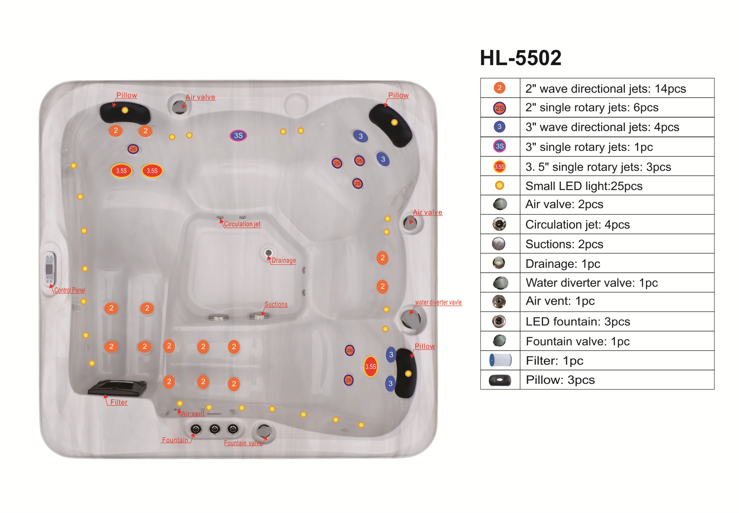 • Snažna hidro-masaža – 34 venturi mlaznice + 3 fontane