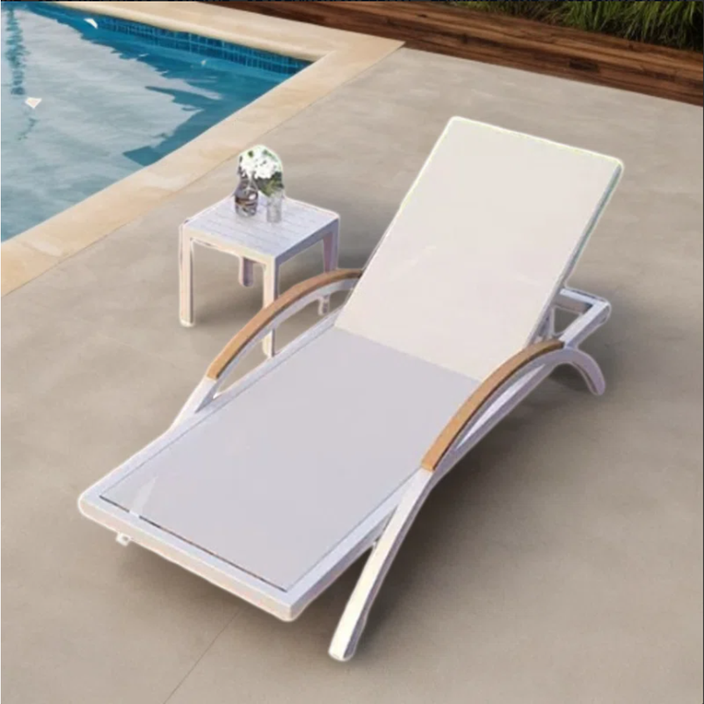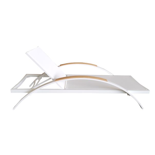Ova ležaljka je savršen spoj moderne elegancije i udobnosti na otvorenom. Dizajnirana sa pažnjom, ležaljka sadrži aluminijumski okvir prekriven belim prahom, što joj osigurava dugotrajan životni vek i otpornost na vremenske uslove. Sedište i naslon ležaljke napravljeni su od jednog sloja lokalnog belog Textilene materijala, poznatog po svojoj prozračnosti i brzom sušenju, pružajući izuzetnu udobnost čak i u toplim danima. Dodajući dašak sofisticiranosti, nasloni ruku su izrađeni od FSC-certifikovanog teka, što pokazuje posvećenost održivosti, dok pruža prirodnu lepotu. Sa dimenzijama L:198 x W:76 x SH:28 cm, ova ležaljka nudi dovoljno prostora za opuštanje u stilu. Bilo da se nalazi uz bazen, na terasi ili u vašem vrtu, Ležaljka Nero unapređuje svaki spoljašnji prostor svojim minimalističkim dizajnom i vrhunskim materijalima.