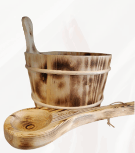 Vedro i kutlača za saunu Nero 7L termotretirano drvo